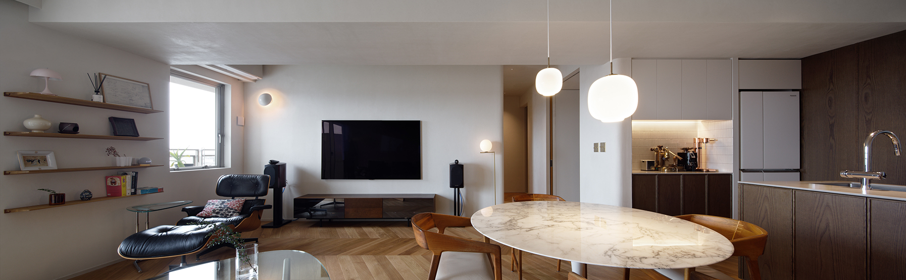 斜め壁のリビング(白金の家)